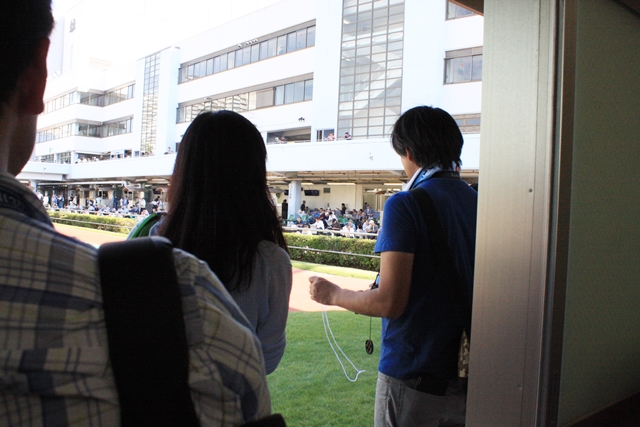 ![]() 騎手控え室からいざパドックへ 騎手の目からはこのように見えるのですね。 | ||||