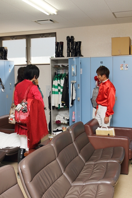 畳の休憩室。 騎乗するレースに合間があればここで仮眠する騎手も。