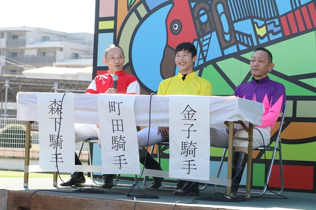 川崎競馬所属ジョッキートークショー 森下博騎手、金子正彦騎手、町田直希騎手がトークショーに参加しました。 (ページ下部にトークショーの動画も有ります) | ||||
