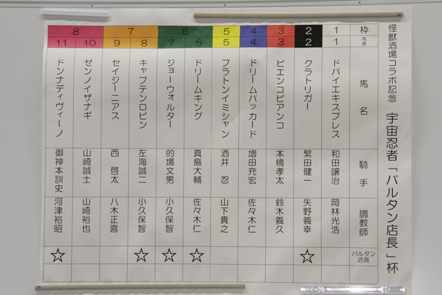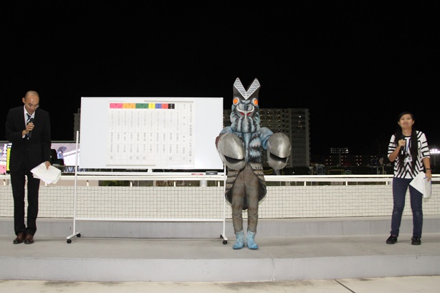 第5レース終了後に バルタン店長による 当日のメインレース:バルタン店長杯の場立予想が行われました。