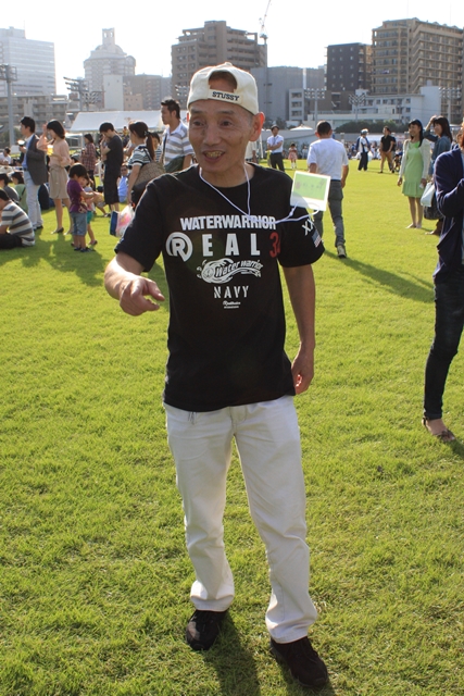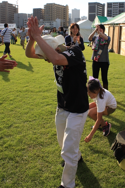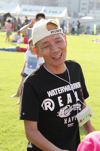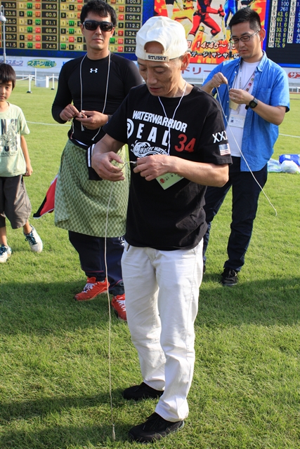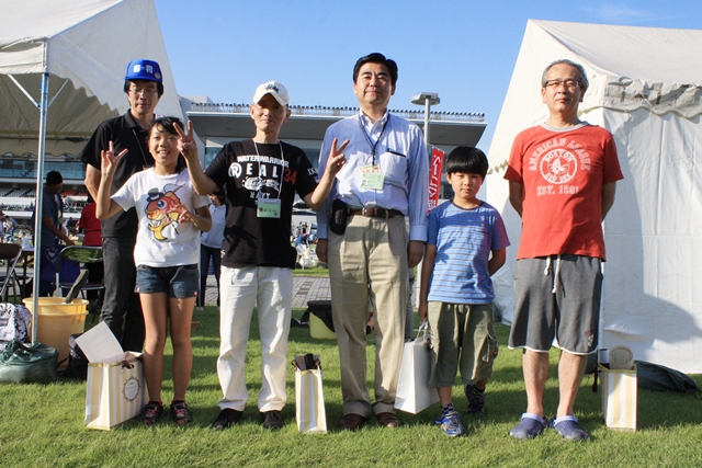 ![]() 大人の部 今年も林隆之調教師が参加 さっきまでポップコーン・綿あめコーナーに居たのでエプロン姿です。 | ||||
