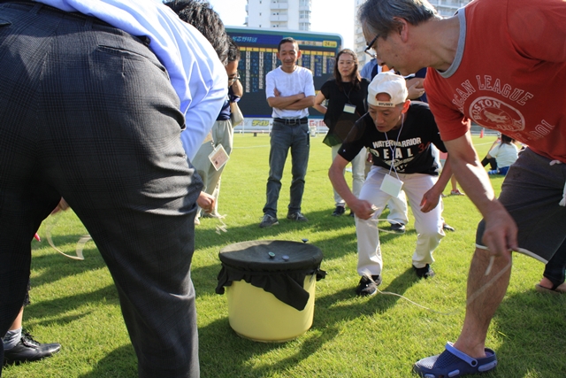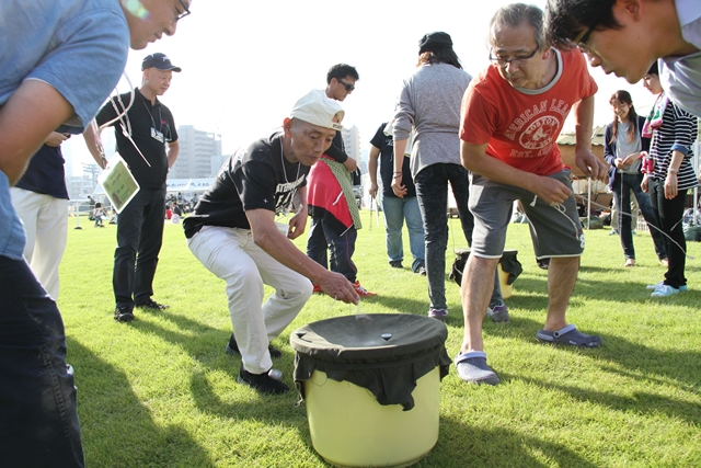![]() 一昨年から始まったベーゴマコーナー 昨年に続き、今年も正式な審判を据えた大会を行いました。 子供達もこの日に向けて練習していたのでしょうか? 実に上手です。 もちろんベーゴマをした事がない方には専門家の親切な指導付きです。 | ||||