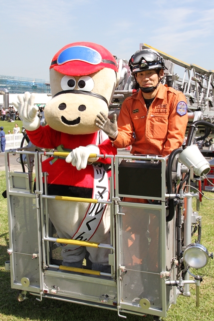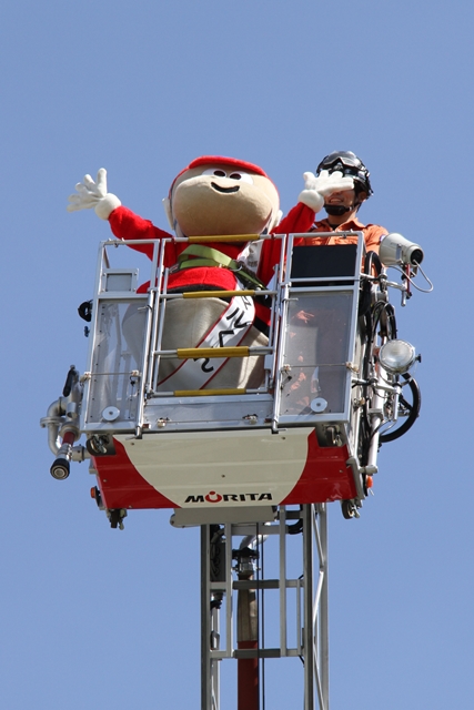 カツマルくん はしご車に乗る