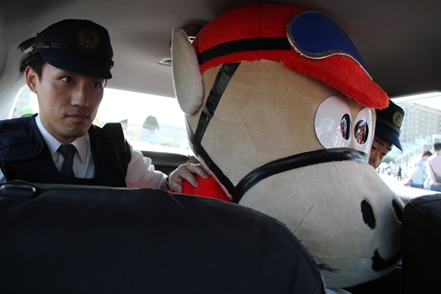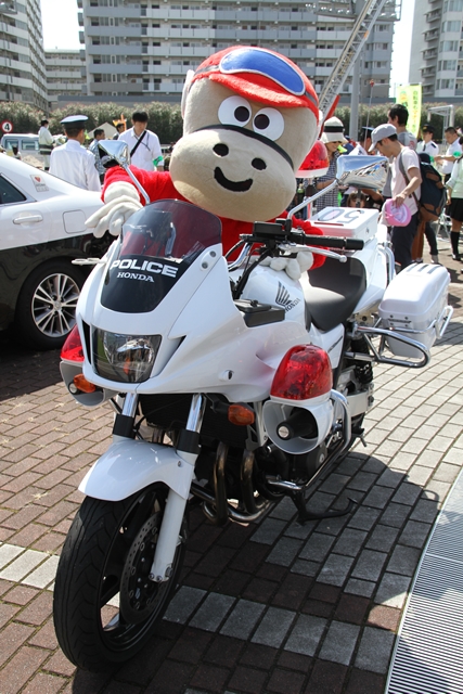 ![]() パトカーだと頭がつっかえそうだから 白バイの方がいいかな? | ||||