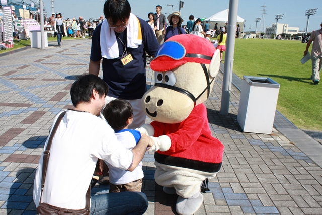 前日までの天気が嘘のような 絶好の天気の中 今年は1万人を上回る多数の来場者にお越し頂き ありがとうございました。 家族連れのお客様も 競馬ファンのお客様も 楽しんで頂けましたでしょうか? ぼくはちょっと悪のりし過ぎて怒られちゃったけど とてもいい思い出の1日になりました。 今日の募金とチャリティ売上の総額は160,541円となりました。 御協力頂きました皆様 ありがとうございました。 こちらは川崎市内の東日本大震被災者支援、社会福祉の向上のため 川崎市に寄付されます。 みんなの笑顔で 他のみんなが幸せな気持ちになれるといいね。 (今日の教訓:みんな並んでいる時は 順番を守ろうね) | ||||