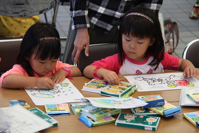 ![]() 安心・安全まちづくり協議会の活動紹介や地域防災に関するPRコーナー。 子供達には楽しいぬり絵が用意されました。 | ||||