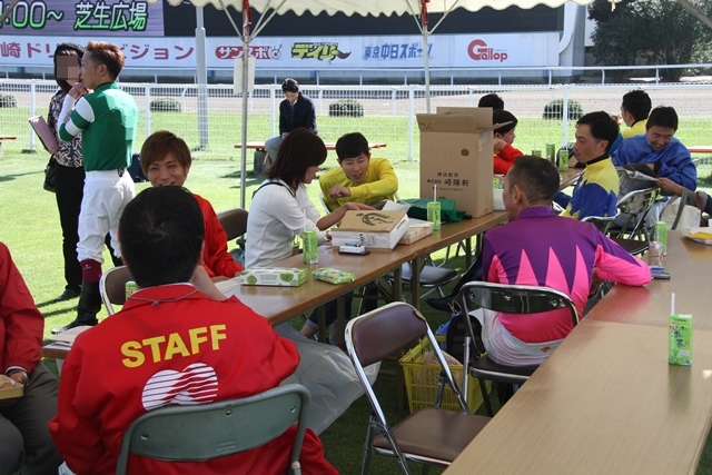 ![]() 騎手トークショーや バックヤードツアーでの出番待ちの間は テントを訪れたファンとのふれあいもありました。 | ||||