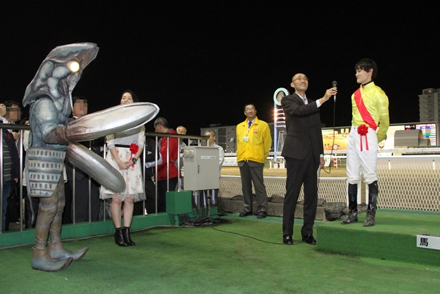 バルタン店長杯表彰式 川崎競馬場×帰ってきた怪獣酒場『怪獣酒場の競馬場侵略作戦』バルタン店長杯表彰式の動画です。Posted by カツマルくん(川崎競馬公式ゆるキャラ) on 2015年11月24日