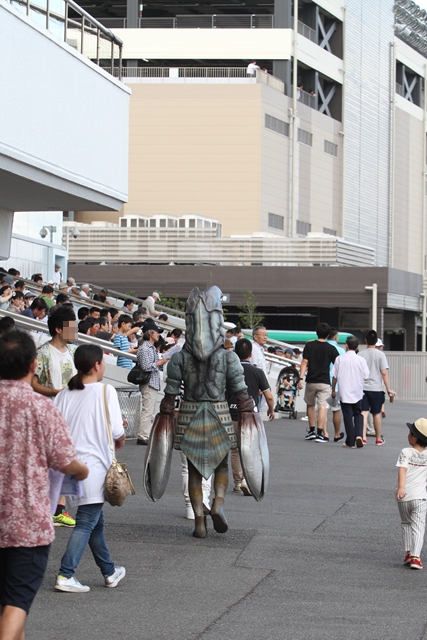 第2スタンド前を通り商業施設に向かうバルタン星人