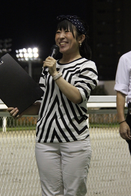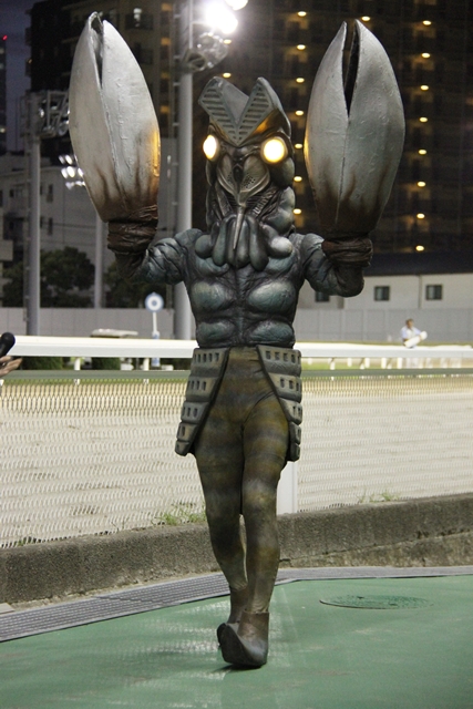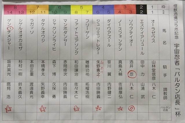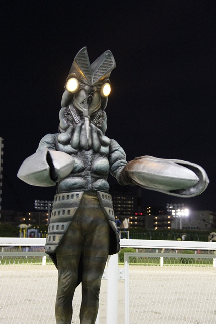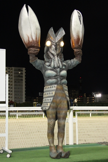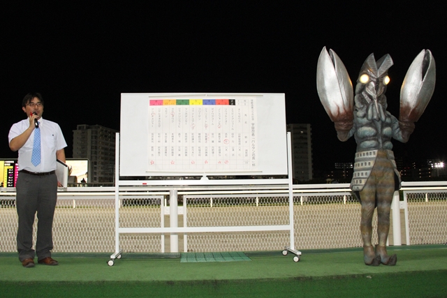 8R終了後 ウィナーズサークルにて 当日のメインレース 「怪獣酒場コラボ記念 宇宙忍者「バルタン店長」杯 の場立予想が行われました。 颯爽とウィナーズサークルに向かうバルタン店長