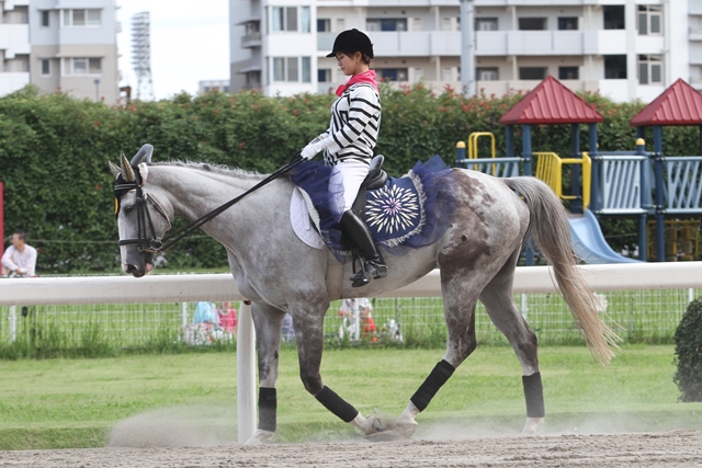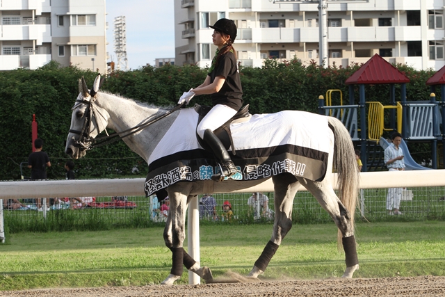 誘導馬は夏らしい花火の衣装を身にまとっていますが…