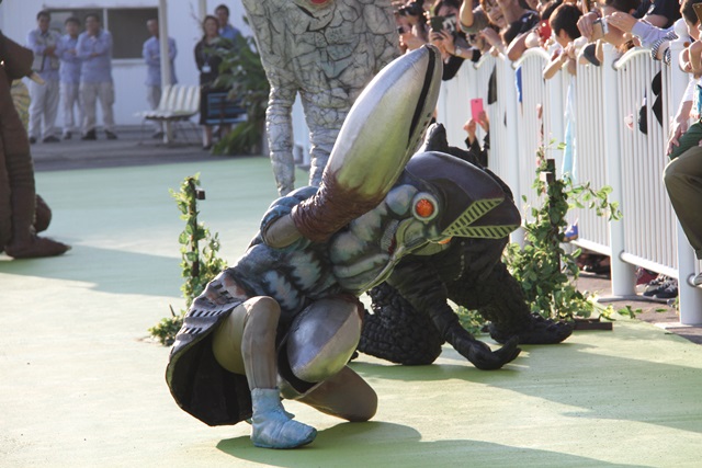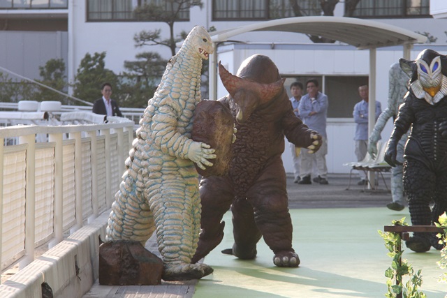 まだ乱闘している2星人。 バルタン星人のラリアットが炸裂。