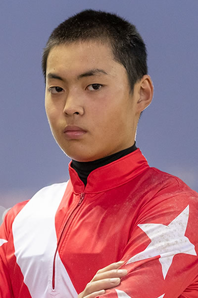 | @池谷 匠翔 (いけたに たくと) A2002年(平成14年) 3月10日 B2020年(令和 2年) 4月13日 2R C74勝 D厩舎のカラーである赤と黒、自分の好きな色である青を組み合わせた。 ◆ミニインタビュー◆ |